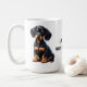 Dachshund Puppy Sitting and Looking with Innocent Coffee Mug