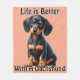 Dachshund Puppy Sitting and Looking with Innocent Fleece Blanket