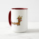 A Cute Dachshund wearing Reindeer Antlers and Santa Claus Bells
