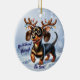 Add a festive dash of doxie charm to your tree with the Dachshund Through the Snow ornament! Featuring a proud dachshund prancing through the snow, adorned with playful antlers wrapped in twinkling Christmas lights, this ornament captures the spirit of the season. The phrase "Dachshund Through the Snow" adds a fun, holiday touch and can be personalised to say whatever you like, making it a unique keepsake or gift. Celebrate the holidays with this delightful ornament that’s perfect for dachshund lovers and anyone who enjoys a whimsical touch to their holiday decor!