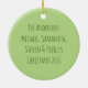 Digitally drawn Christmas Dachshund wearing red and green sweater and cap. Back is customizable with your family names.