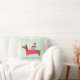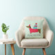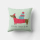 Dachshund Through The Snow Cute Christmas Dog Fun Throw Pillows features a cute whimsical Dachshund dog carrying gifts with the text "Dachshund through the snow" in modern script. Designed by Evco Holidays www.zazzle.com/store/evcoholidays