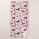 dachshund variety pattern in pink bath towel set