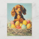 Celebrate Easter with the adorable Dachshund in this vintage-style postcard. Featuring the loveable dog surrounded by pastel Easter eggs, blooming spring flowers, and festive seasonal details, this design is perfect for Dachshund lovers, collectors, and fans of nostalgic holiday art. A charming keepsake to share the joy of Easter.