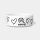Cute Dachshund black and white simple drawing in combination with hand drawn hearts and custom name. Unique, humourous, adorable, monogrammed pet bowl, perfect for weenie dog.