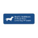 This dachshund label boasts a vibrant and lively aesthetic, showcasing a single wiener dog against a striking navy blue backdrop. It radiates a sense of energy and character, making it a standout choice for adding a pop of fun to your envelopes.
