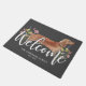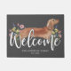 This unique red tan Dachshund doormat is a fun addition to your front door. The design features a cute watercolor dachshund illustration, combined with wildflowers and a trendy script font. Perfect for spring or summer outdoor decor. Easily personalise with your family name and year.