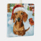 This festive design captures the joyful spirit of the holiday season, featuring an adorable pup wearing a Santa hat. The dog is nestled in a winter wonderland, complete with a snowman, a decorated Christmas tree, and beautifully wrapped presents. Snowflakes gently fall, adding a magical touch to the scene, while the vibrant colours of the holiday decorations create a warm and cheerful atmosphere.