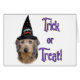 Will it be Tricks or Treats this Halloween? Our holiday design has your favourite dog breed, the wire coated Dachshund, wearing a witch's hat. Add a little 'Hocus Pocus' to All Hallows' Eve this year!
