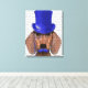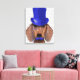 Dachshund With Blue Top Hat and Blue Moustache Canvas Print