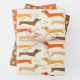 A pattern of warm autumn coloured dachshunds with corresponding polka dots for a cute set.
