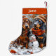 Add a delightful touch to your holiday decor with this charming Christmas stocking featuring two adorable Dachshunds dressed in cozy hats and scarves. The design captures the Dachshunds sitting in a snowy winter scene alongside a cheerful snowman wearing a top hat. This Christmas stocking is perfect for dog lovers and Dachshund enthusiasts and sure to bring warmth and joy to your mantle and holiday celebrations! generativecontent
