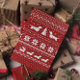 Red and white Christmas sweater style pattern with Dachshunds wearing holiday sweaters and a squirrel riding a sleigh pulled by Doxies. Text: Love Joy Peace Wiener Dogs. Inside message can be personalised with your own holiday greeting. A perfect holiday card for pet services to customise and send to customers, friends and clients. Great for veterinarians, pet sitters and dog walkers. A fun greeting card for anyone who loves a wiener dog. Send this festive Dachshunds Christmas card to everyone on your list. Visit Jenn’s Doodle World for even more products with this fun weenie dogs design, as well as more dog breed Xmas cards and gifts.