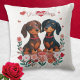 Dachshunds Hearts Flowers Dogs Valentine's Day Cushion