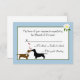 Cute dogs wedding response RSVP card done in white, with adorable silhouette graphics of a brown and a black dachshund kissing, in the bottom left corner. A light blue and green frame surrounds the outer edge, with a single white daisy in the upper right corner. Customise the fun curly text to suit your needs.