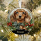 An adorable Dachshund puppy poses for his first Christmas. Name, year, and photos are easily personalized. Don't have a photo of your loved one's new Dachshund puppy? No problem! Both sides of this ornament are already prepared with perfect pictures for gifting.