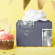 Personalise wrapping paper for your Christmas gifts. The text, "Merry Christmas Dad" can be personalised with your own greeting and the name you call your dad, or add the word from and use your name as the giver of the gift. The text is white with snow caps on each letter. A photo of a dad and his baby daughter is featured and is set up to be replaced with your own photo. A green frame with green fractal snowflakes in each corner overlays the photo. The image and text are tiled across the wrapping paper with a purple background.