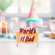 Glasses with World's #1 Dad in 3D burgundy text. Available in several styles.
