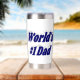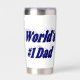 Tumbler with World's #1 Dad in 3D dark blue text.