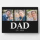Celebrate fatherhood with this simple and modern “Dad Est. [Year]” photo plaque. Featuring white typography, this design is perfect for new dads or seasoned fathers alike. Customize with a photo and the year to mark when he first became a dad — a sweet, personal touch that makes this photo plaque extra meaningful. Ideal for Father's Day, baby showers, pregnancy announcements, or casual everyday use. This custom photo plaque is a thoughtful way to honor the year that changed everything.