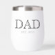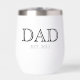 Sleek black and white personalised dad established year design thermal wine tumbler with bold lettering. Ideal for fathers and new dads, this modern personalised dad design makes a meaningful keepsake gift with a clean, masculine style for everyday use.