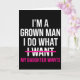 Celebrate Father’s Day with laughter! This “I’m a Grown Man, I Do What My Daughter Wants” Card is the perfect funny gift for dads who proudly embrace their girl-dad role. Featuring bold distressed typography and a playful crossed-out line for extra humor, this design makes an ideal present from daughters for Father’s Day, birthdays, or any special occasion. Great for dads who love jokes, family humor, and sentimental gifts with personality.