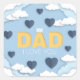 Happy Father's Day cute design, dad i love you yellow text, white clouds and blue hearts in the sky, 3d paper cut cartoon