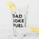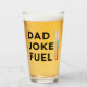 Cute and funny beer glass featuring text that says "dad joke fuel" in bold fonts with a fuel metre next to it. Perfect for a father's day gift.