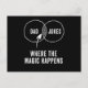 The funny design with the title Dad jokes where the magic happens. Go through life with a lot of humour, fun and happiness with this cool magic happens motif. For friends and family to laugh together.
