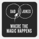 The funny design with the title Dad jokes where the magic happens. Go through life with a lot of humour, fun and happiness with this cool magic happens motif. For friends and family to laugh together.