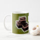 Fun Father's Day or Dad's Birthday mug. Mug reads "Dad – Just like fudge you’re really sweet with a couple of nuts". Unique design by Sarah Trett.