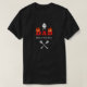 For a black, dark t-shirt. Text: DAD. King of the grill. With a grill, flames and grill tools.
