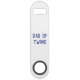 Twin dads will like this minimalist bottle opener. Blue text reads "dad of twins" and the back has a blue splash of paint. Great gift for Father's Day, birthdays, and a Christmas stocking stuffer.