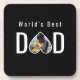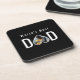 Dad Photo in Black Heart Frame Modern Text Coaster