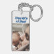 Keychain with World's number 1 dad in 3D sea blue text. Customise it with your own photo. Available for several styles.
