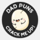 Dad Puns Crack Me Up Funny Egg Pun Dark BG Classic Round Sticker