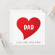 Dad red cute big heart personalised custom text or names modern typography greeting card, note card.