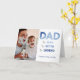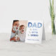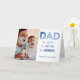 This modern typography design birthday card features DAD rendered in a blue gradient, with 'the man, the myth, the legend' in modern sans serif and hand lettered blue typography. A favourite vertical photo is on the front, and the inside features a favourite horizontal image, and your personal message. Copyright Custom Photo Gifts, all rights reserved.