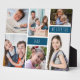 Modern Photo Collage Plaque. Design features 6 photos and Dad We Love You In trendy lettering on a navy background. Perfect gift for dad for fathers day, Christmas or birthday etc.