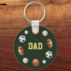 Dad World of Sports Name Keychain features footballs, basketballs, soccer balls, baseballs, golf balls circling the name Dad. Background colour and text can be customised. A great Father's Day Gift, birthday gift or Christmas gift for Dad. Design by 369MyName : 369.