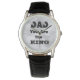 Show your dad how much you appreciate him with this customised watch. This durable crown protector watch features a white grey background with the words "Dad You Are The King" This watch makes a great gift for Father's Day, Birthdays, or any other occasion.
