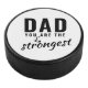Dad you are the Strongest Father`s Day Hockey Puck. The text is black modern typography. You can change any text or erase it. A perfect gift for a dad or a new dad on a Father`s day or birthday.