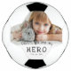 Daddy Hero Father Dad Family Photo Soccer Ball. Text is in simple hand-drawn fonts. You can change daddy into dad, papa, pap,... and add your photo and names. A cute gift and a sweet keepsake for Father`s Day, birthday or Christmas for dad.