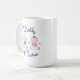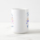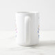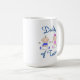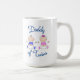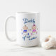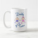 Cute coffee mug with "Daddy of Twins" in blue and cute baby boy and girl in blue and pink clothes.