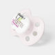 I'm content with the pacifier however it was smaller then I expected and hard to read but otherwise okay. The design was small so reading it wasn't as clear obviously as in the picture.