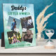 Add your favourite family photos to this personalised plaque that says, "Daddy's Little Angels." Text can be customised. Blue and green background.