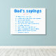 All of your dad's favourite sayings on a beautiful wrapped canvas to hang in his den or the living room. Your dad will get a kick out of all his dad-isms this Christmas or Father's Day.