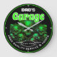 Dad's Garage Green Skulls Automotive Mechanic Large Clock