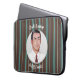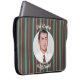 This laptop sleeve looks exactly as it does in picture. I actually thought is was too small until I put my laptop in it. It's a bit snug, but it fits. Figure it will stretch a bit, hopefully seams hold. Them seem good for now. I didn't have any personalization done, looks great as is.