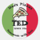 Design in a pizzeria logo style, with the colours of the Italian flag and customisable texts. Perfect to honour your country, grandfather, or whoever else is dear to you!